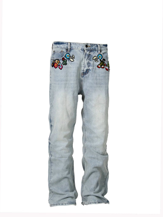 Untold Snow Mountain Embroidered Bootcut Jeans