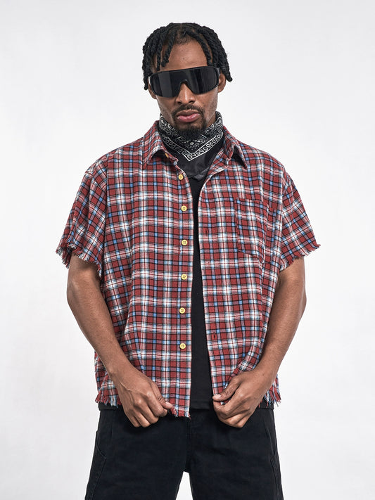 Plaid Distressed Edge Grid Shirt