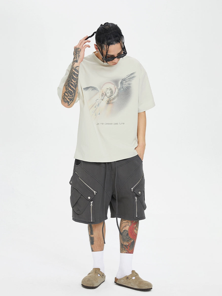 The Angel Noise Print Vintage T-Shirt features a striking celestial-inspired graphic that captures attention with its artistic and moody aesthetic. With a distressed vintage wash and relaxed fit, this tee offers the perfect blend of edgy streetwear and timeless comfort. It’s a standout piece ideal for making a subtle yet bold fashion statement.