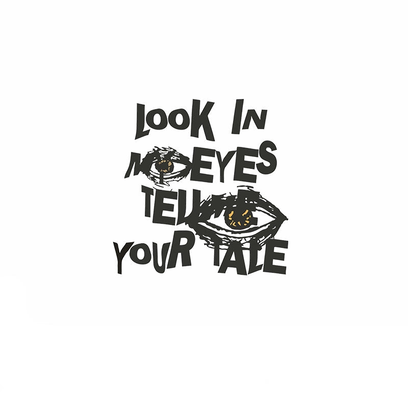 ✅ Bold front graphic with “Look In My Eyes Tell Your Tale” – a conversation starter