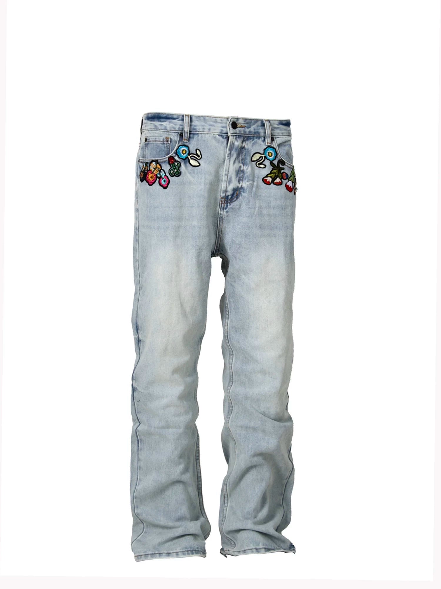 Designed for both style and comfort, the straight-leg silhouette offers versatile wearability, making these jeans suitable for casual outings or creative streetwear ensembles. The washed finish ensures a soft, broken-in feel, perfect for all-day comfort with a fashionable edge.