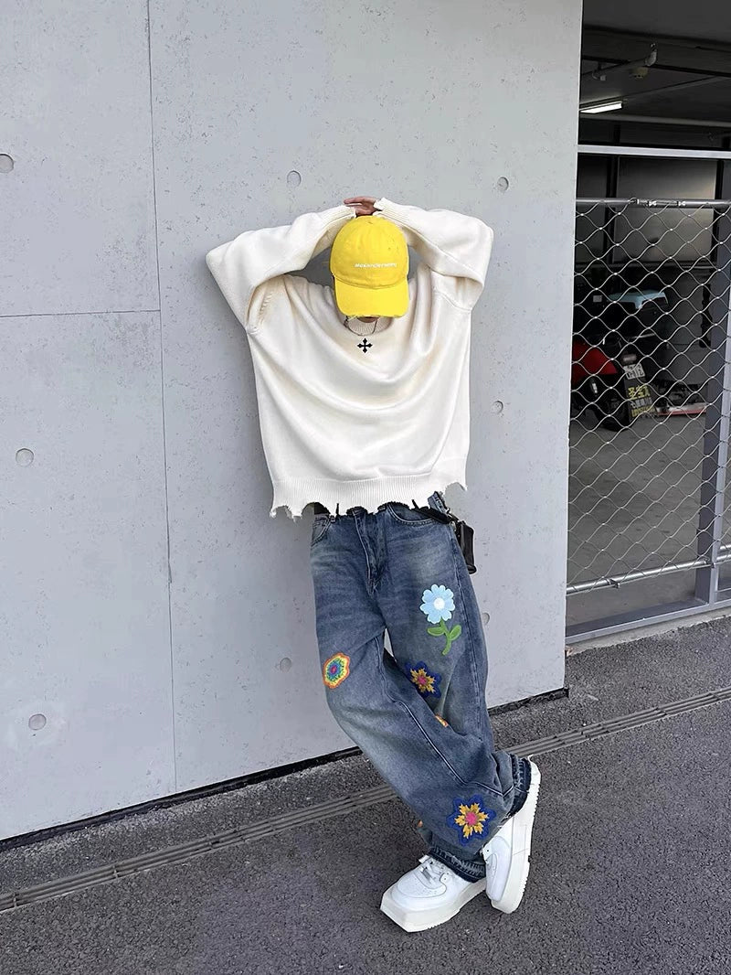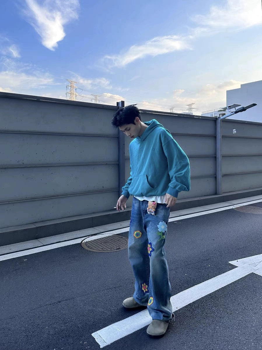 Crafted for comfort and standout style, these jeans combine premium fabric with artistic embroidery. The loose silhouette ensures easy movement, while the wool details deliver warmth and sophistication, making this pair ideal for cooler days with a flair for individuality.